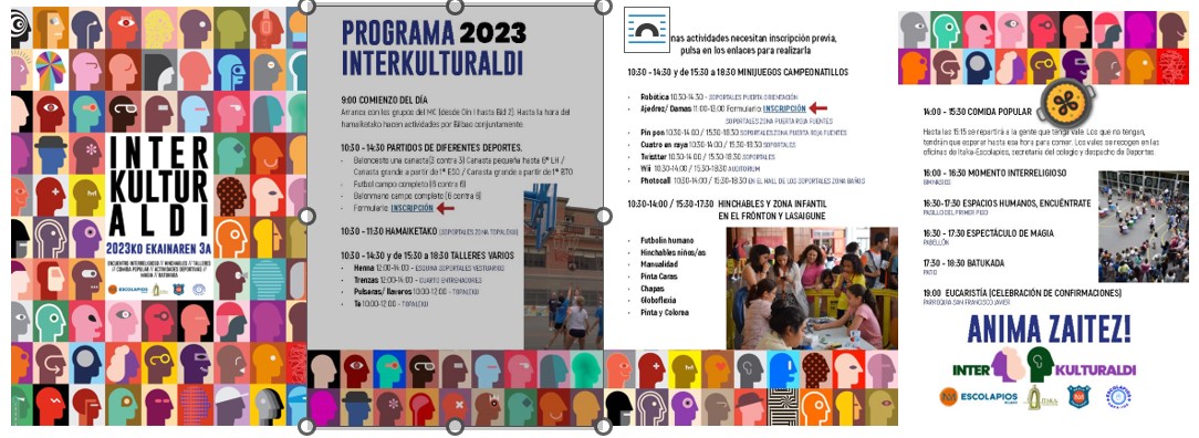 La presencia escolapia en Bilbao organiza una fiesta de las personas y plataformas de misión de dicha ciudad: religiosos, Fraternidad, misión compartida, educadores, voluntarios, colaboradores, Movimiento Calasanz, asociación deportiva… del colegio, los diferentes proyectos de Itaka – Escolapios (escuela de educadores, hogares, alfabetización, refuerzo escolar, etc.).