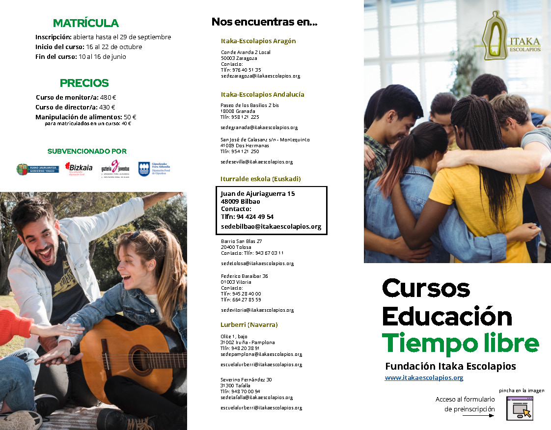 Itaka – Escolapios imparte cursos oficiales para educadores del tiempo libre desde 1986 en diversas localidades de España:  Andalucía, Aragón, Euskadi y Navarra. Y también, sin ese reconocimiento civil, en otros países.