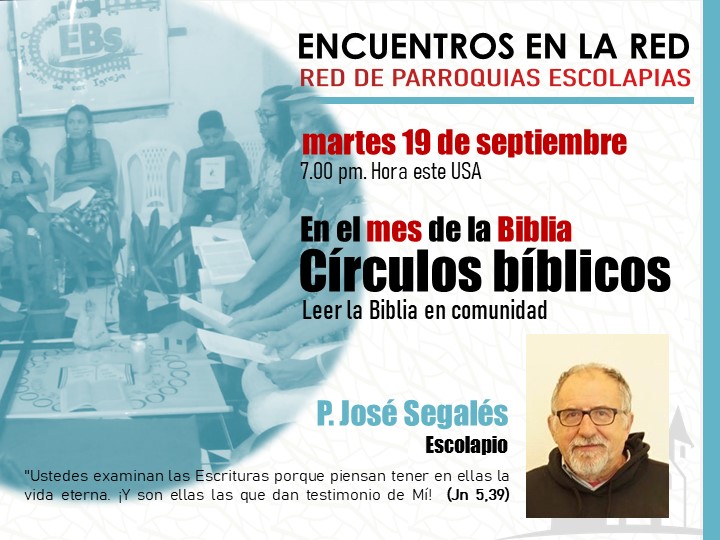 La Red de Parroquias escolapias nos invita a un nuevo encuentro online con el P. José Segalés sobre esta propuesta de Círculos Bíblicos para este mes de septiembre, mes de la Biblia.