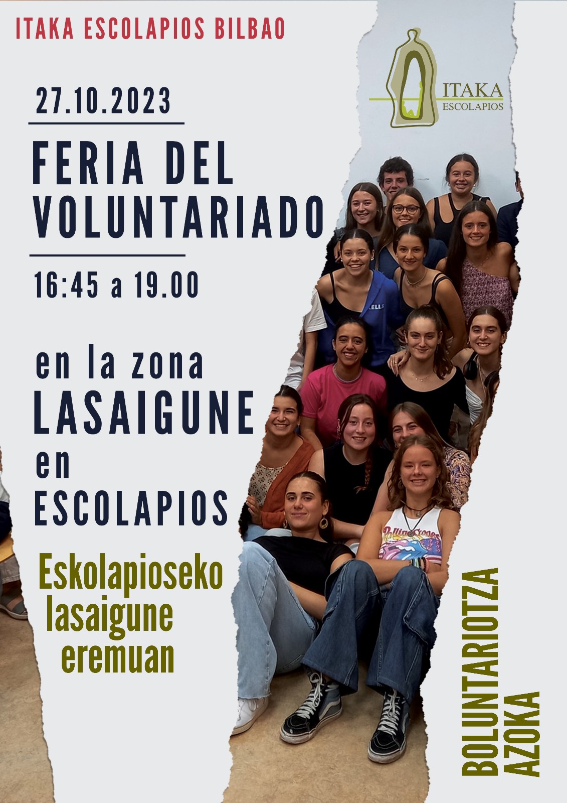 “Este viernes 27 de octubre celebraremos una Feria del voluntariado para dar a conocer la oferta de Itaka Escolapios Bilbao. Es mucho y variado el trabajo que lleva adelante la entidad y gracias al voluntariado podemos llegar a mucho más.