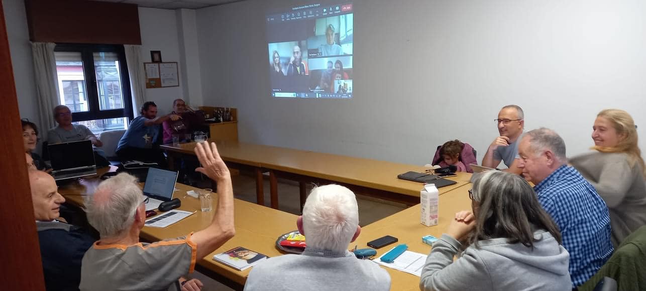 Primera reunión del curso compartida entre Vitoria, Bilbao y Zaragoza, a la que se han incorporado Nacil y Leo desde Chile y en la que han participado también Enrique y Miguel, religiosos recién enviados a Bilbao.