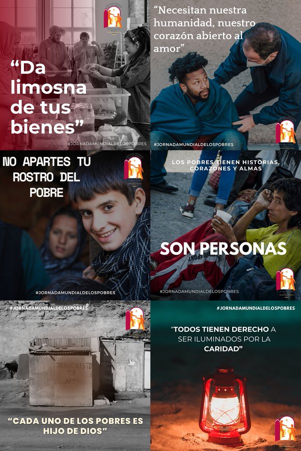 19 noviembre, JORNADA DE LOS POBRES 19/11/2023 El Papa dedica este día a los pobres, para no apartar nuestro rostro de ellos, para colocarlos en el centro, para solidarizarnos y crear un mundo como Dios manda.