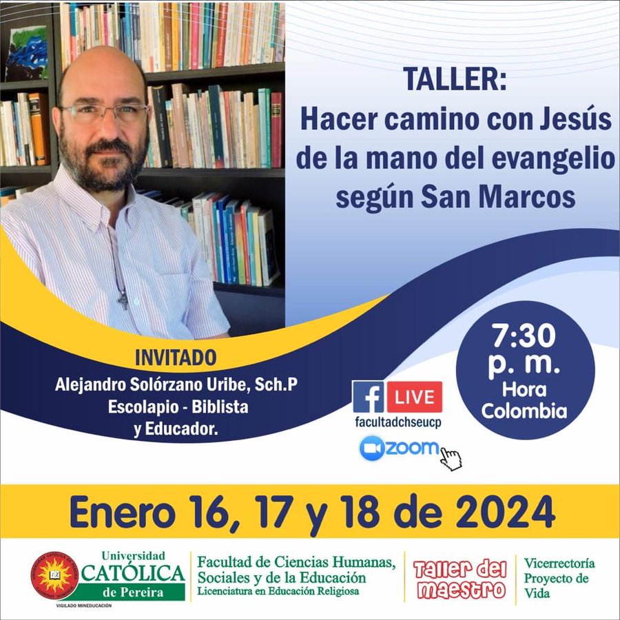 Taller «Caminando con Jesús de la mano del Evangelio según San Marcos». Una iniciativa entre la Facultad de Ciencias Humanas, Sociales y de la Educación de la Universidad Católica de Pereira y el ICCE-Nazaret. … Inscripciones aquí: bit.ly/3Sf3xMe
