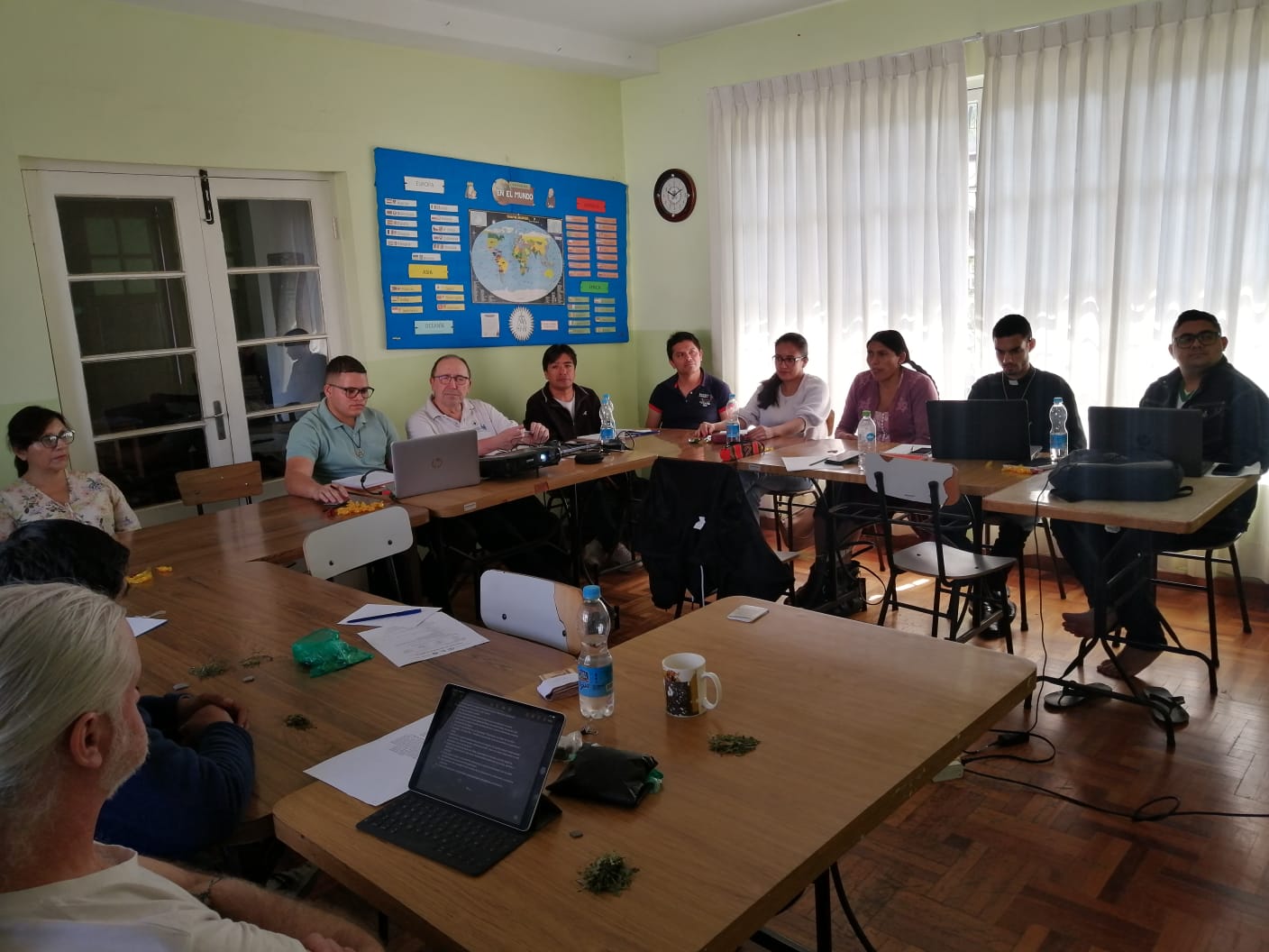 Durante los días 5 y 6 de abril se celebró la asamblea presencial de los religiosos escolapios y los laicos de la Fraternidad en Cochabamba para compartir momentos de oración, conversaciones informales, un buen repaso a la situación de las presencias y los equipos, compartir informaciones, tener un encuentro online con el P. Julio (Asistente General y Responsable de este núcleo en la Orden) y seguir reflexionando sobre el tema central de este año: el escolapio que necesitamos.