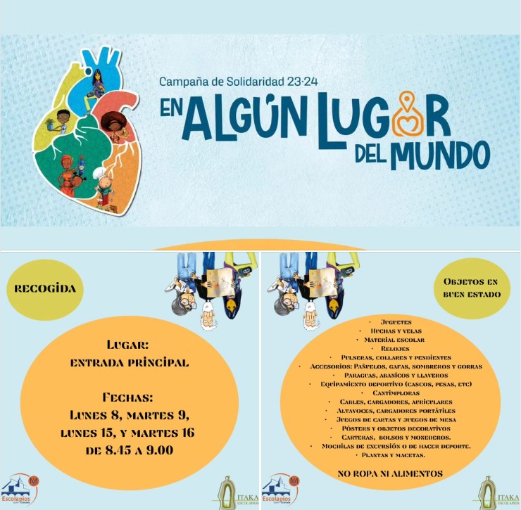 El colegio escolapio de Logroño junto con la sede de Itaka – Escolapios está desarrollando, un año más, la campaña de solidaridad internacional que se lleva a cabo en muchos países y localidades para apoyar los proyetos de educaciòn transformadora de la res Itaka – Escolapios.