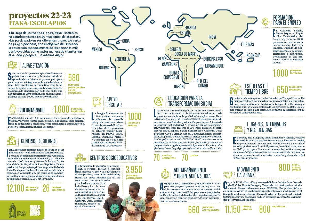 Una imagen para resumir la labor que alcanza a más de 31.000 personas, de 63 localidades, de 19 países, gracias a la colaboración de cientos de profesionales, 1.600 voluntarios y muchas personas y entidades que nos apoyan económicamente.