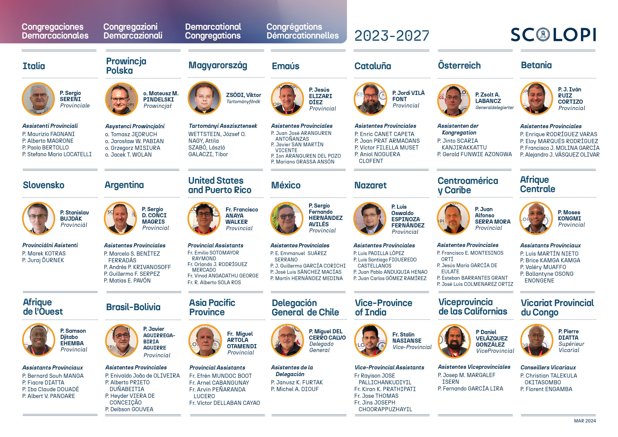 Presentamos el infograma con las composiciones de las diferentes Congregaciones Demarcacionales y los nuevos equipos después de los recientes capítulos provinciales y viceprovinciales. El gráfico permite localizar también la fotografía de cada uno de los superiores mayores, así como la configuración de los equipos y sus asistentes. Este material da a conocer un poco más a quienes han asumido la responsabilidad de guiar la realidad de los Escolapios en los diferentes lugares del mundo. Les deseamos lo mejor en su servicio a la Orden en la demarcación que les ha sido confiada.