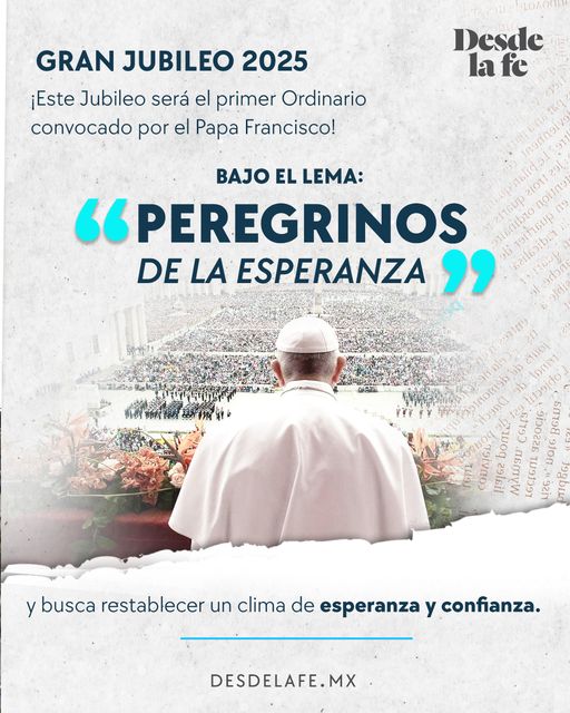 PEREGRINOS DE LA ESPERANZA 14/05/2024 El Papa convoca para el próximo año a un jubileo de la esperanza, con el título «Peregrinos de la esperanza». Con ello se quiere contribuir a crear un mundo que crezca en la confianza y la esperanza.