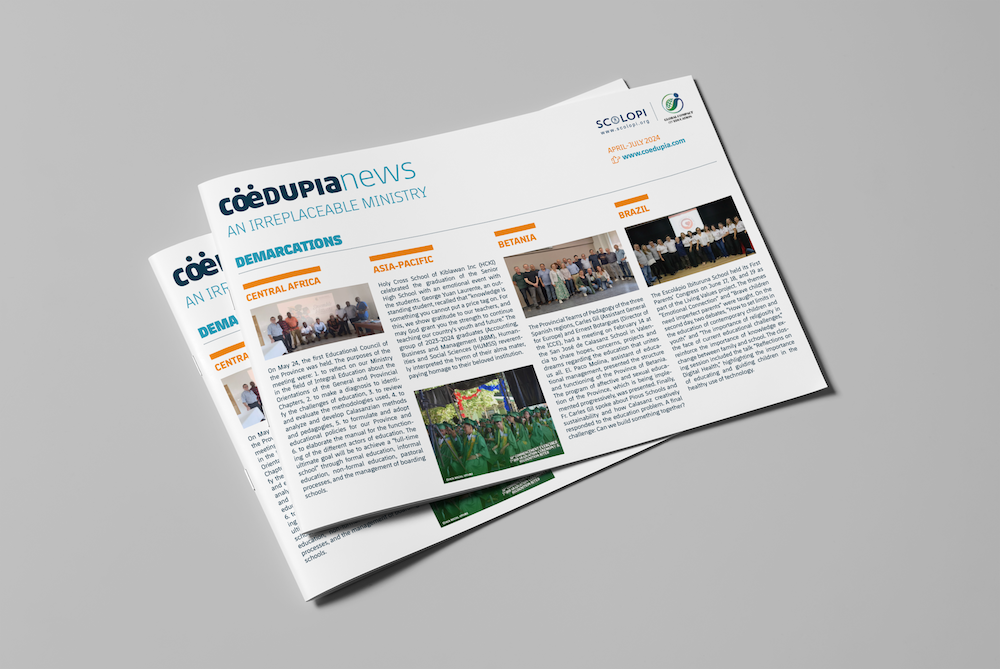 Ya está disponible el tercer número de la newsletter trimestral de Coedupia, con las últimas noticias que, en el ámbito pedagógico, comparten todas y cada una de las demarcaciones y equipos generales. En este tercer ejemplar se ofrece una amplia panorámica de los últimos acontecimientos escolapios. Desde la celebración del primer Consejo Educativo en África Central, el encuentro de colegios de la provincia de Eslovaquia o la rica presencia escolapia en Perú, donde ya gestionan tres centros educativos… Una lectura de este nuevo número nos acerca al fantástico dinamismo de una Orden que, a día de hoy, trabaja por hacer realidad el sueño de Calasanz.