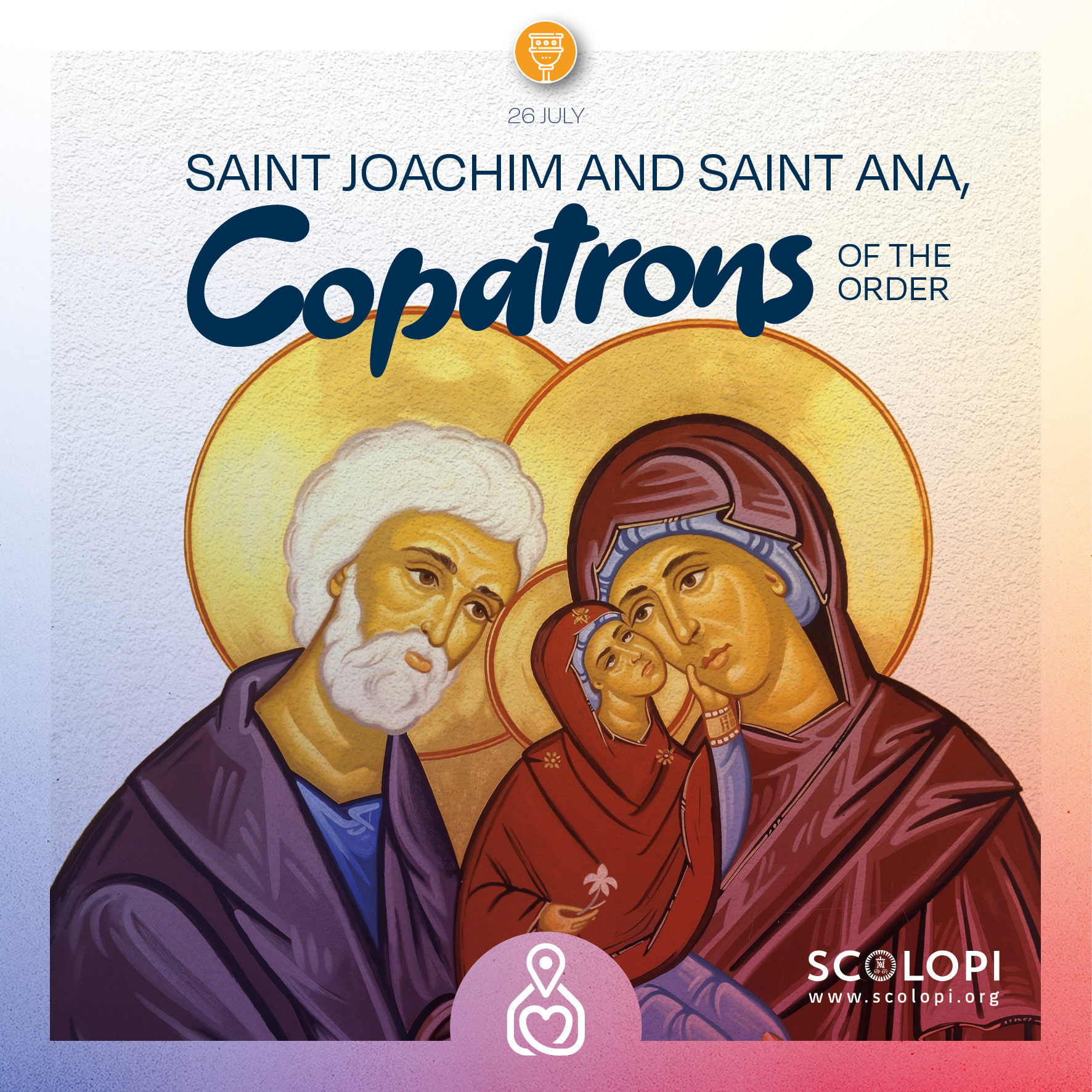 Hoy, 26 de julio, celebramos, junto al conjunto de la Iglesia, a San Joaquín y Santa Ana, copatronos de la Orden. Los padres de María, Joaquín y Ana, son también los patronos de los abuelos y fueron personas de profunda fe y confianza en las promesas de Dios.