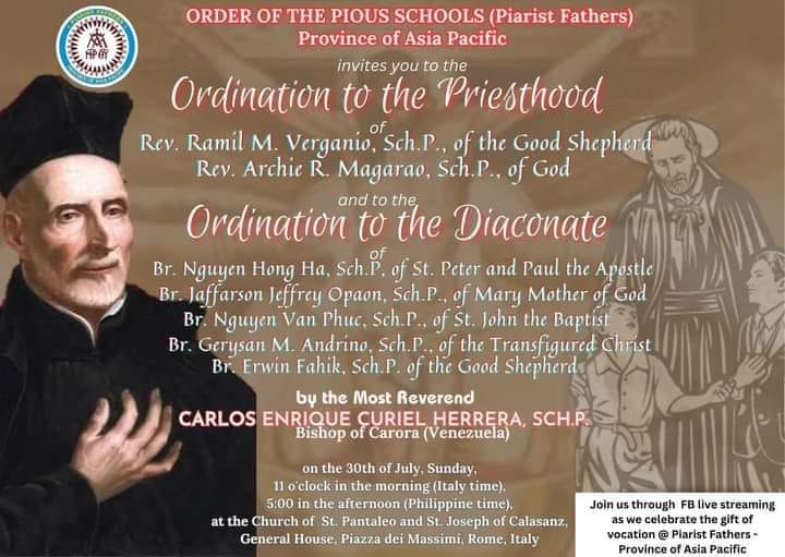 Damos gracias a Dios por este regalo a la Orden y su misión. Y pedimos por estos sacerdotes y diáconos escolapios.