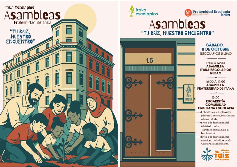 El 11 de octubre se celebrará, por la mañana la asamblea de Itaka – Escolapios en Bilbao y, por la tarde, la de la Fraternidad de Itaka, siguiendo la periodicidad habitual de comenzar cada curso con estos dos encuentros que marcan la dirección del año en estos dos ámbitos tan relacionados.