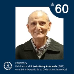 Hoy, 9 de octubre, ha fallecido el P. Jesús Marqués Aranda, de la Provincia de Emaús, en la comunidad Virgen de las Escuelas Pías de Zaragoza (España),a los 85 años de edad, con 68 años de vida religiosa escolapia.