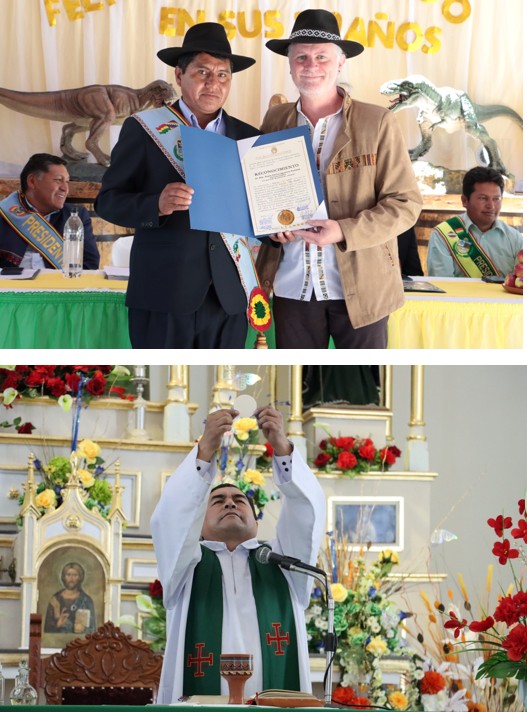 Compartimos algunas imágenes de nuestra Unidad Educativa, obtenidas de la página de la Asamblea legislativa departamental de Cochabamba, donde vemos a Carlos con el Alcalde, a Justino en una misa parroquial… y no aparece Wilson en el internado y otras personas que también hacen posible la presencia escolapia en Anzaldo.