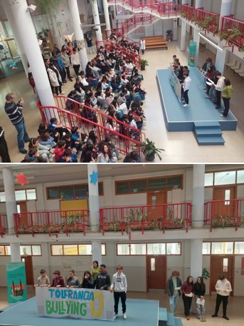 El 28 de octubre, a las 12 del mediodía hemos hecho un parón en nuestras clases de Secundaria y Ciclo Formativo para alzar la voz contra el acoso escolar y sus consecuencias. Hemos leído un manifiesto que ha escrito nuestro alumnado de cuarto de la ESO y hemos guardado un minuto de silencio por todos aquellos alumnos y familias que sufren acoso escolar.