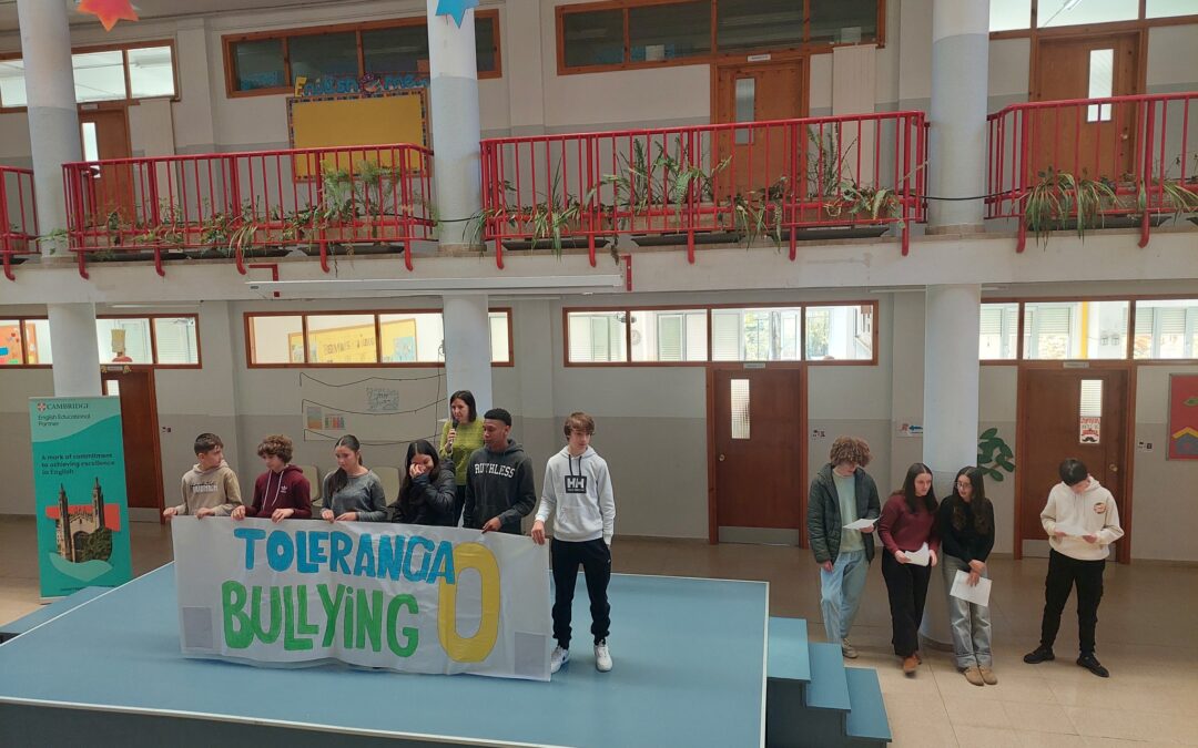 El 28 de octubre, a las 12 del mediodía hemos hecho un parón en nuestras clases de Secundaria y Ciclo Formativo para alzar la voz contra el acoso escolar y sus consecuencias. Hemos leído un manifiesto que ha escrito nuestro alumnado de cuarto de la ESO y hemos guardado un minuto de silencio por todos aquellos alumnos y familias que sufren acoso escolar.