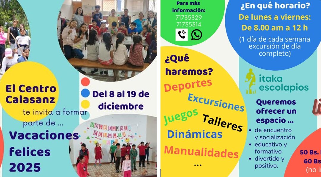 Por cuarto año consecutivo, lanzamos nuestra propuesta de Plan Vacacional, del 8 al 19 de diciembre, en el Centro Calasanz de Itaka – Escolapios en Cochabamba (Bolivia).