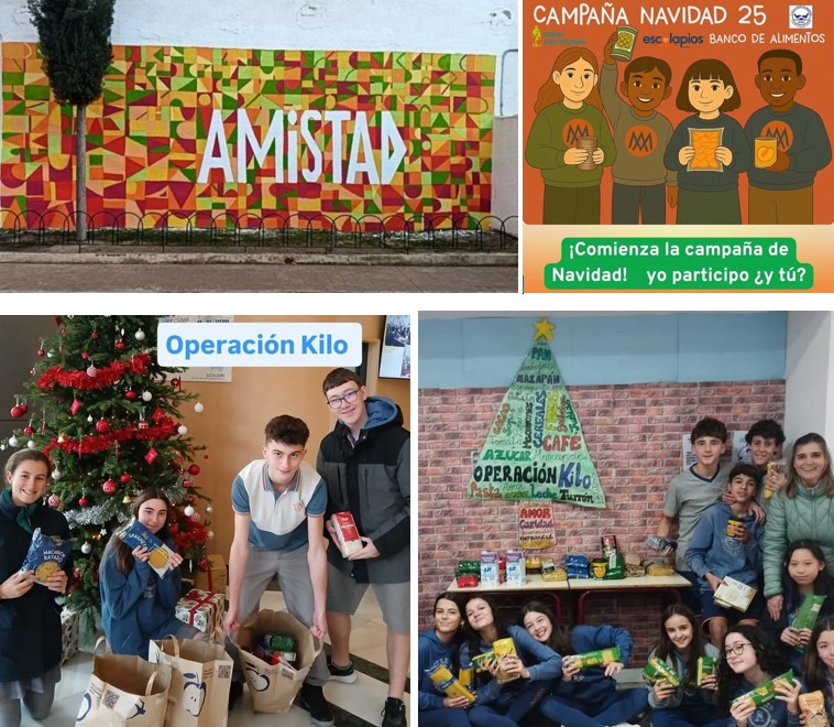 Por ello, en los colegios y centros sociales, en las parroquias y el Movimiento Calasanz, en las diferencias presencias, lanzamos en estos días el comienzo de la Campaña de solidaridad internacional de la Red Itaka  Escolapios, recogida de alimentos y de juguetes y material escolar para compartir, acciones de sensibilizaciõn como este mural en el colegio, visitas a hospitales y residencias de infancia y ancianos, momentos de oración ycelebración, retiros y campamentos, preparación para vivir con intensidad lo que significa la Navidad…