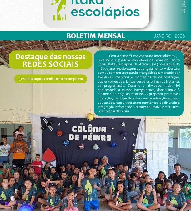 Como todos los meses, Itaka – Escolapios en Brasil publica su boletín con las informaciones de los centros sociales de Aracaju, Belo Horizonte, Governador Valadares y Serra, como podemos ver en https://escolapiosbrasilbolivia.org/images/download/port/Itaka/2026/boletim_itaka_escolapios_janeiro26.pdf