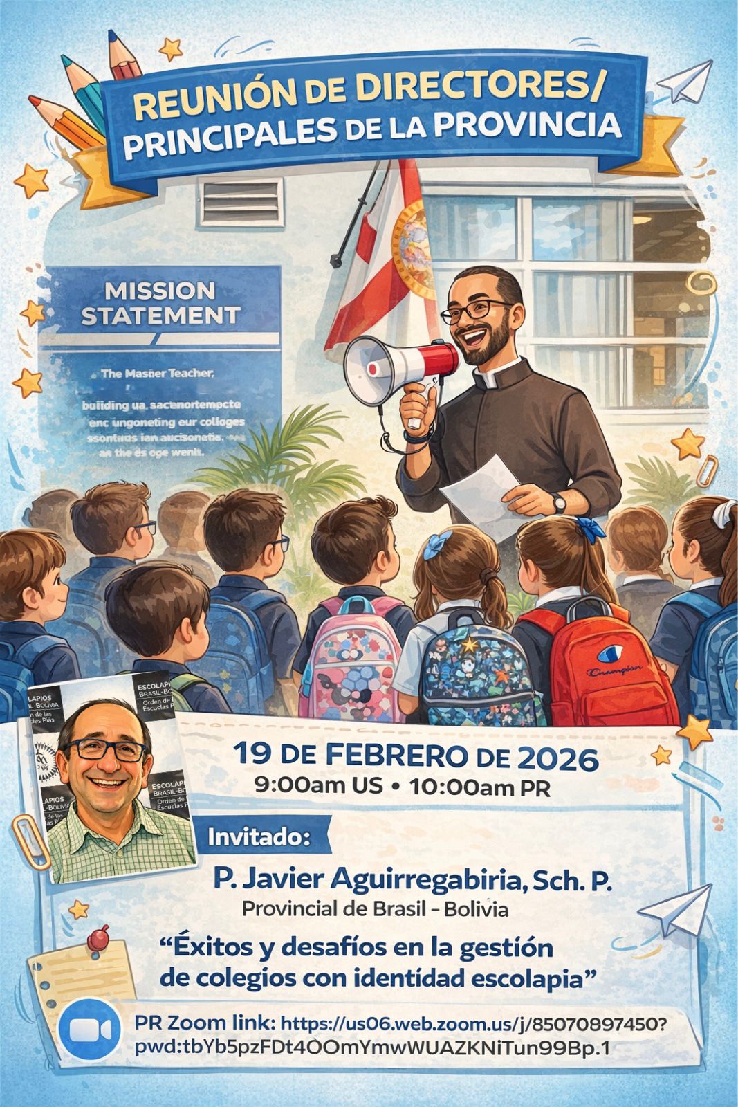 El 19 de febrero se celebró un encuentro virtual de los Directores Principles de los colegios escolapios de USA – PR con el P. Javier Aguirregabiria, Provincial de Brasil – Bolivia.