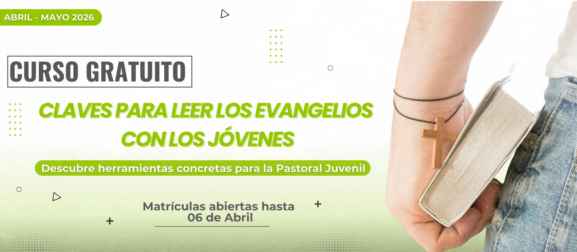 ¿Por qué participar? Leer la Biblia con jóvenes es uno de los desafíos más hermosos y también más exigentes de nuestra labor pastoral. Este curso te brindará herramientas sólidas para acercarte a los evangelios con una hermenéutica que escucha, transforma y acompaña a quienes viven su fe hoy.