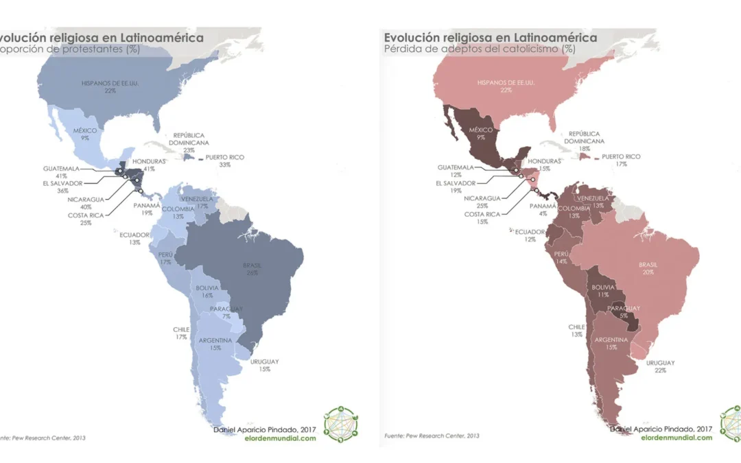 La transformación del mapa religioso en América Latina constituye uno de los procesos socioculturales más significativos del siglo XXI. Durante siglos, el catolicismo no solo fue la religión predominante, sino también un eje estructurante de la identidad colectiva, la legitimidad política y la vida comunitaria. Sin embargo, datos recientes del Pew Research Center muestran una disminución sostenida de la afiliación católica en países clave como Brasil, Chile, Uruguay, Argentina y México, acompañada por el crecimiento de iglesias evangélicas, el aumento de personas sin religión y una crisis de confianza en las instituciones tradicionales. Este fenómeno no debe interpretarse como la desaparición de la fe, sino como su transformación en un contexto de pluralismo, movilidad social y búsqueda de nuevas formas de sentido.