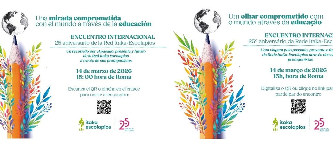 Hoy, 14 de marzo, tenemos una celebración muy especial, un encuentro online internacional, para celebrar los 25 años de la creación de la Fundación Itaka – Escolapios, un recorrido por el pasado, presente y futuro de la Red Itaka – Escolapios a través de sus protagonistas.